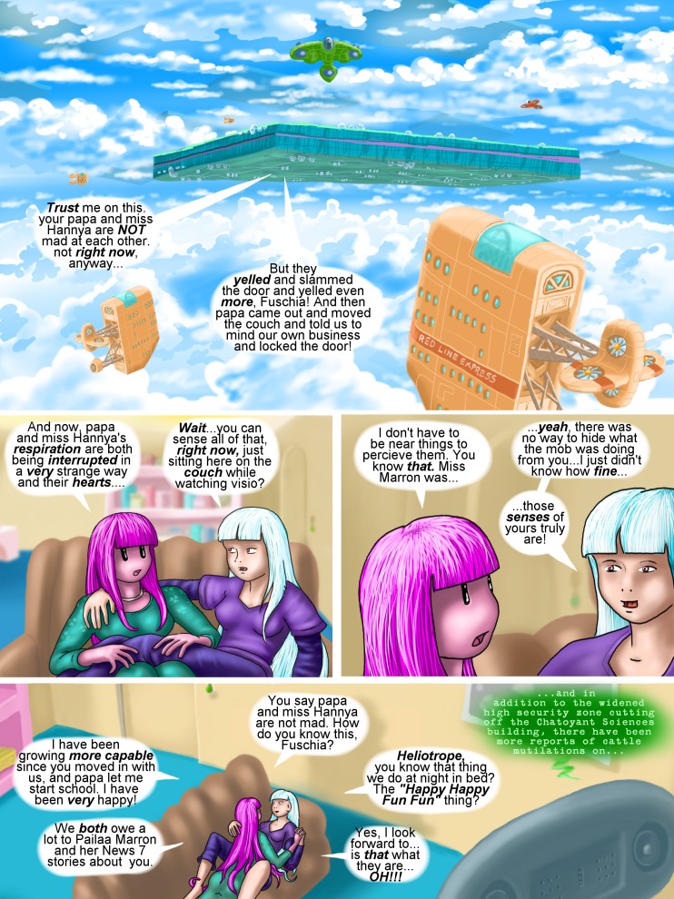 PAGE FOOTNOTES  I was always impressed by how Koko the gorilla, faced with a mysterious new food -which soon became her favorite, invented her own American Sign Language name for watermelon: "Drink Fruit" . Heliotrope, as she gradually encompasses the process of being human in the world, also invents her own words and descriptions...and tends to cling to them, even after being given the proper term. I think she is expressing an increasing individuation through this behavior.