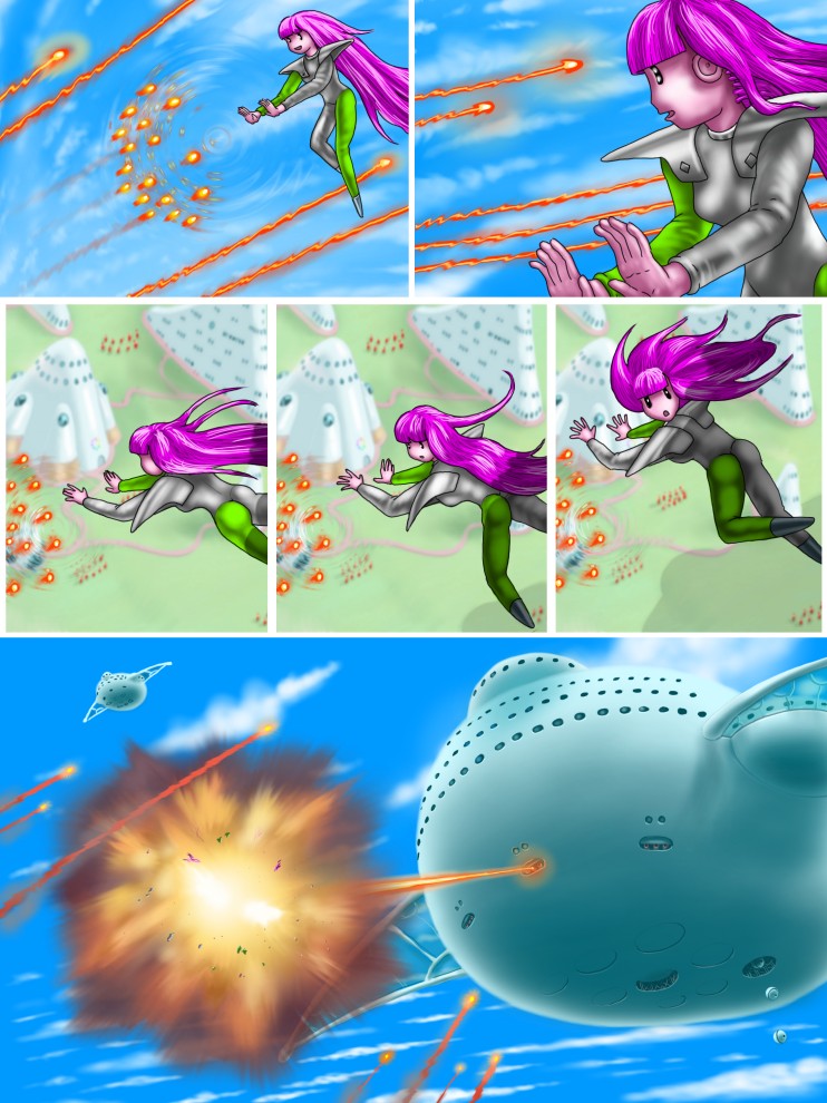 PAGE FOOTNOTES: Thus begins the last pages of this chapter. All the remaining pages of this chapter will be completely text-silent, save for one single word, an onomatopoeia, a sound effect.