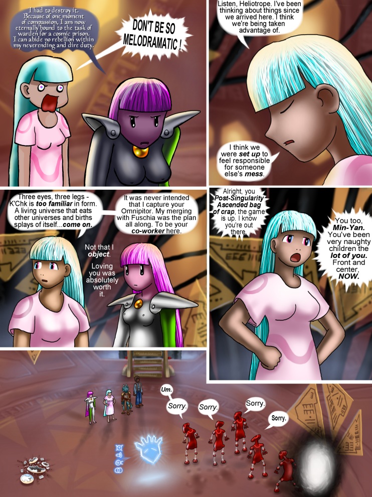 PAGE FOOTNOTES: I had a lot of fun drawing the expressions of Fuschia and Heliotrope in this page. Especially the first and fourth panels.