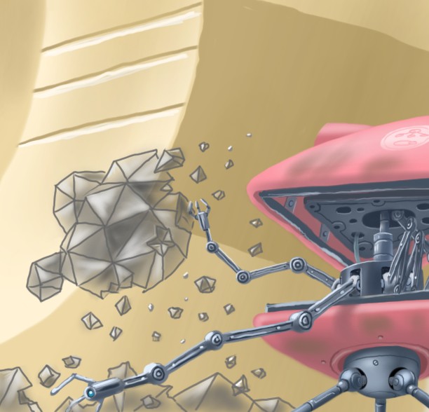 The ancient series 1636 Machine Slime, or 'Mecha Slime', is a robotic creature capable of various remote repair, observation and maintenance tasks. Compact, surprisingly sturdy, and versatile, the Mecha Slime (so named because among the Jellese, their partner species the Slimes act as constructors, cooks, and manufacturers) is actually more akin to the crystal-hulled, beach dwelling Scut-Scut in design.