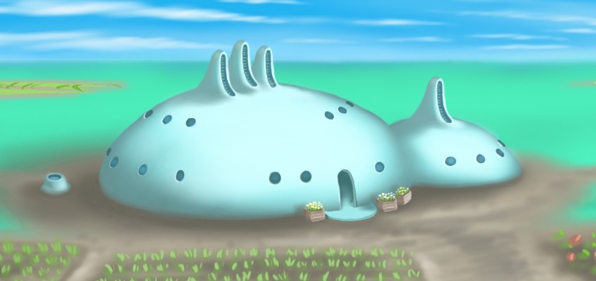 Fuschia and Heliotrope's farm house is roomy. Fuschia originally planted the flowers in the front boxes, but as she became too old to care for them, Heliotrope took over the task to make her happy. The crates, as well as many other items in the house came originally from Cerul's colonial fleet, and were given to Fuschia over the years. The well in back was carved by Heliotrope using her Power, it naturally collects atmospheric water.